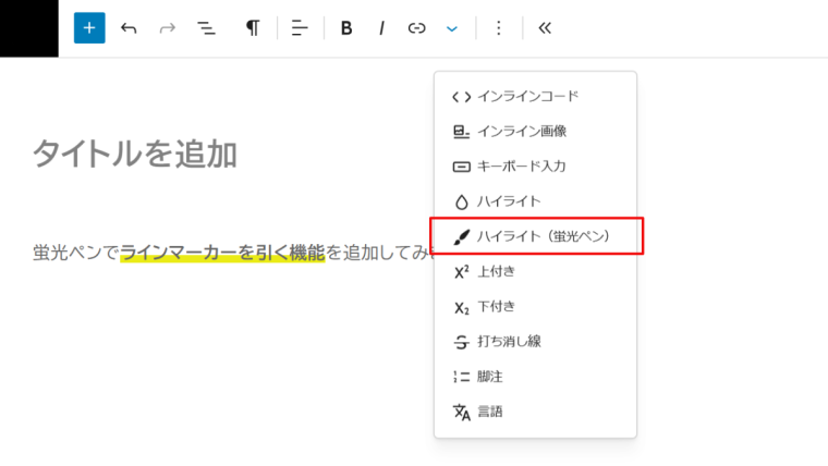ブロックエディタに「ハイライト(蛍光ペン)」という名前でラインマーカー機能が追加されました!